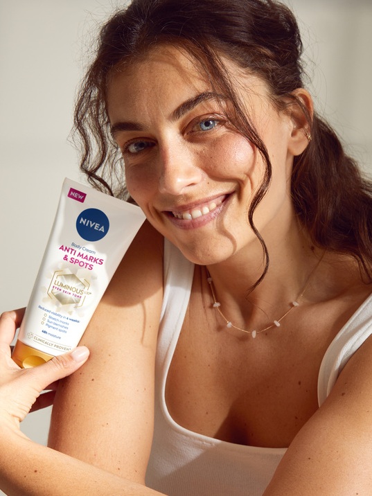 Linija NIVEA Luminous630 Anti Stretch Marks sa Thiamidol‑om (ranije Luminous 630) posebno je formulisana da se bavi i strijama i tamnim flekama na telu. Thiamidol, patentirani aktivni sastojak, klinički je dokazan u smanjenju vidljivosti tamnih fleka i može pomoći da se spreči njihovo ponovno pojavljivanje uz doslednu upotrebu. Takođe ujednačava razlike u tonu kože, pa strije postaju manje vidljive.