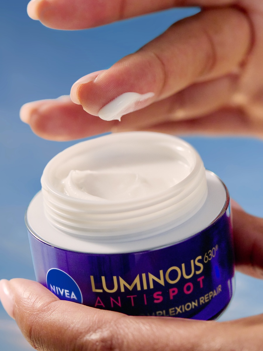 NIVEA LUMINOUS630® ANTISPOT Night Complexion Repair deluje dok spavate, pomažući popravku neujednačenog tona kože i poboljšanju blistavosti kože.