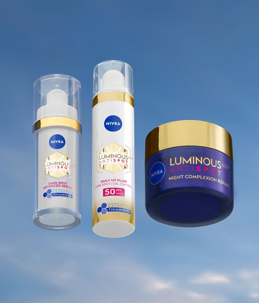 Tiamidol je patentiran sastojak za negu kože, posebno formulisan da smanji proizvodnju melanina, što može dovesti do tamnih fleka, hiperpigmentacije i neujednačenog tona kože. Najnovija istraživanja pokazuju da je Tiamidol jedan od najefikasnijih sastojaka za smanjenje tamnih fleka*, i da nadmašuje mnoge uobičajene sastojke protiv fleka. U proizvodima NIVEA LUMINOUS630® Tiamidol deluje na samom uzroku tamnih fleka kako bi otkrio blistav, ujednačen ten**.
