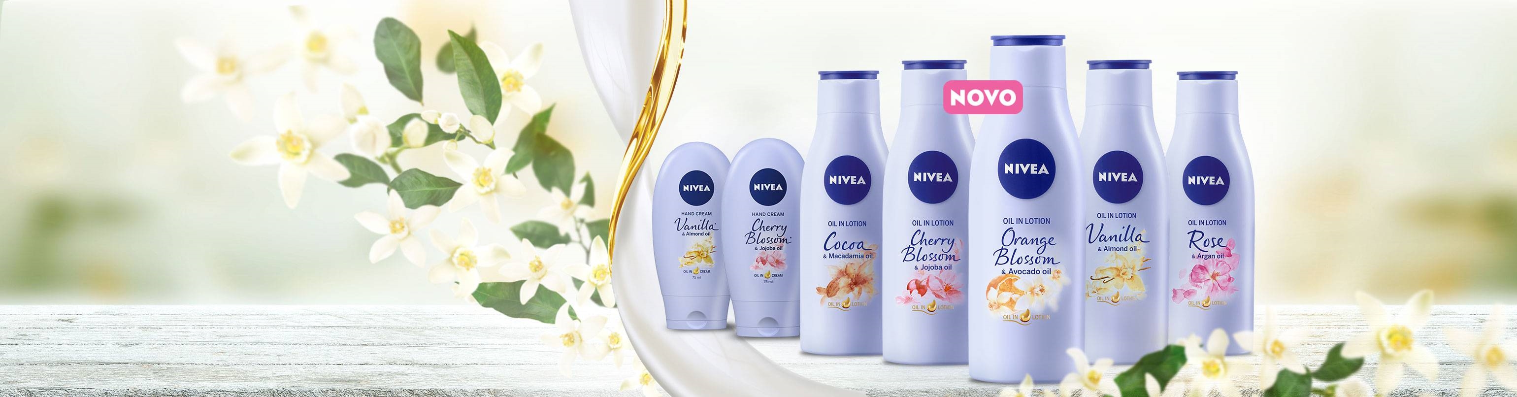 Provedite trenutke koje ste posvetili sebi u prijatnoj atmosferi i pružite svojoj koži i svim čulima uživanje u različitim mirisima NIVEA losiona bogatih uljem – cvet pomorandže i ulje avokada, trešnjin cvet i ulje jojobe, ruža i arganovo ulje ili vanila i bademovo ulje. Nega ruku je podjednako važna – nekoliko puta u toku dana nanesite NIVEA kremu za ruke bogatu uljem sa mirisom trešnjinog cveta ili vanile.