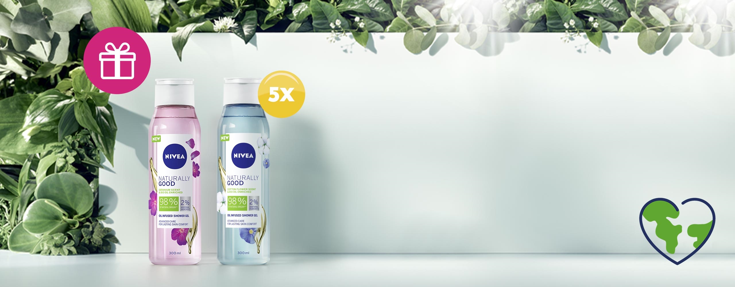 Iz dana u dan okolina nam pruža sve što nam je potrebno da bismo živeli punim plućima. Naša misija: pružiti joj zaštitu, težeći da postanemo što održiviji. NIVEA Naturally Good gelovi za tuširanje sadrže 98% prirodnih sastojaka i dolaze u ambalaži od 97% reciklirane PET plastike. Dakle, koristeći ih, uživate u osvežavajućem dodiru prirode pod tušem i istovremeno brinete o planeti.