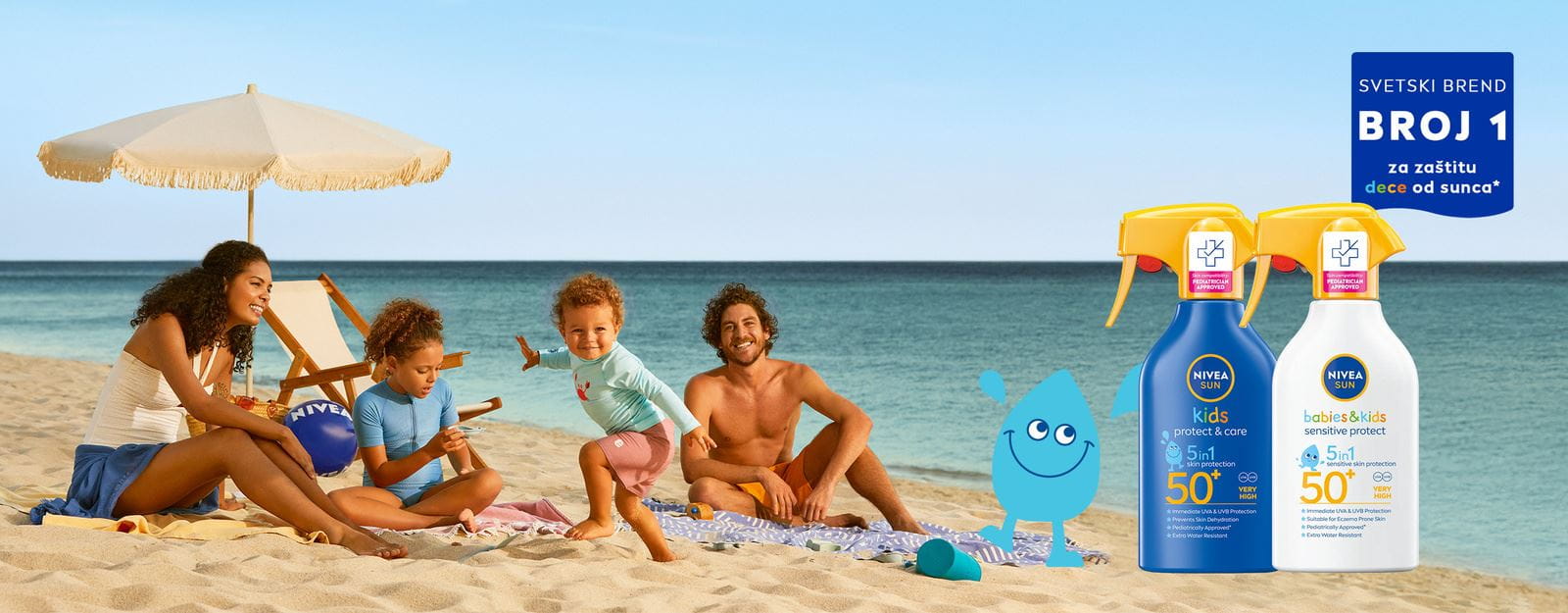 Stvaranje nezaboravnih letnjih uspomena sada je mnogo bezbrižnije uz NIVEA SUN proizvode za zaštitu od sunca za decu. Svojom specijalno razvijenom formulacijom pružaju trenutnu zaštitu nežnoj i osetljivoj koži beba i dece. NIVEA SUN proizvodi – svetski brend broj 1 za zaštitu dece od sunca* – hidriraju kožu i istovremeno je štite od opekotina od sunca i dugotrajnih oštećenja kože.