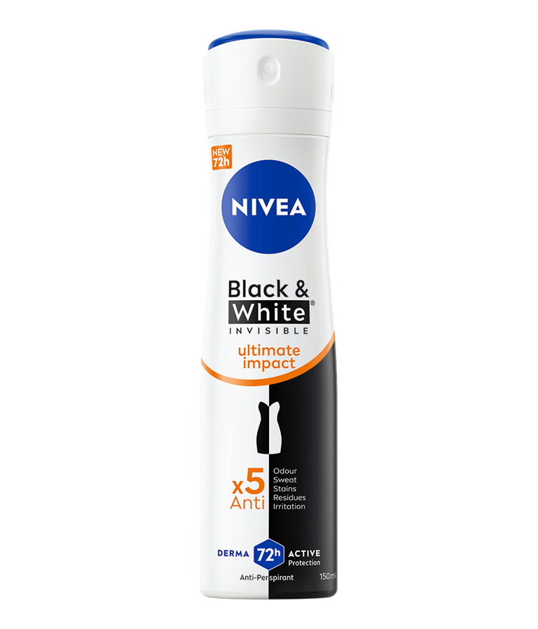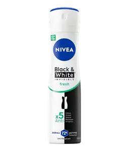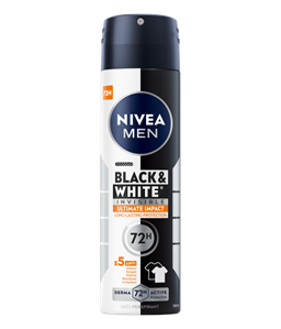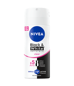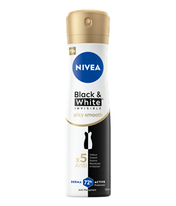 NIVEA Black & White Invisible linija antiperspiranata pruža zaštitu od belih tragova na crnoj odeći i žutih fleka na beloj odeći zahvaljujući jedinstvenoj patentiranoj tehnologiji protiv fleka. Pruža pouzdanu 72h zaštitu protiv znojenja i neprijatnih mirisa, dok istovremeno neguje vašu kožu.