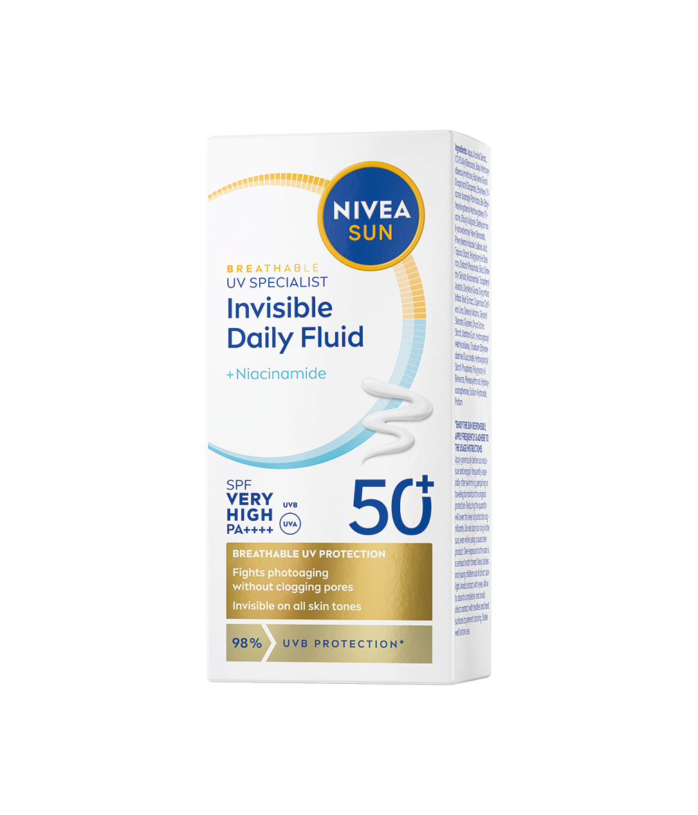 NIVEA SUN Breathable UV Specialist Invisible dnevni fluid SPF 50+ pruža naprednu zaštitu od foto-starenja bez zapušavanja pora. Nevidljiv je na svim tonovima kože, ne ostavlja bele tragove i koža ga trenutno upija.