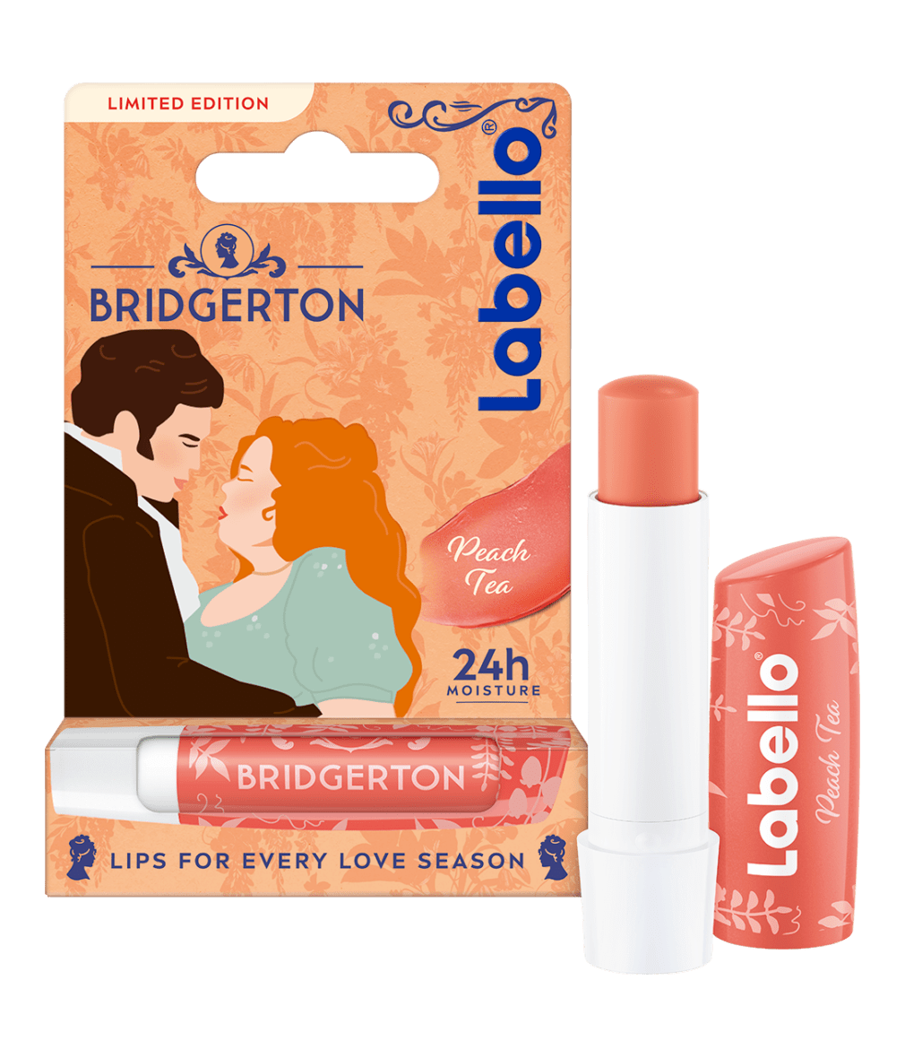Labello ograničeno Bridgerton izdanje: Peach Tea balsam za usne pruža 24-časovnu hidrataciju, uz neodoljiv miris breskve i suptilan koralni sjaj na usnama.