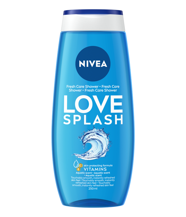 Osvežavajući gel za tuširanje sa vodenim mirisom pruža osećaj svežine i nege pod tušem. Obogaćen vitaminima C i E, ovaj gel za tuširanje nežno čisti kožu, ostavljajući je glatkom i zdravom: NIVEA LOVE Splash gel za tuširanje.