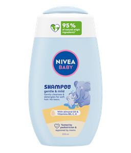 NIVEA Baby kupka nežno čisti bebinu kosu i ne izaziva suze. Biorazgradiva i blaga formulacija za nežnu i meku kožu.