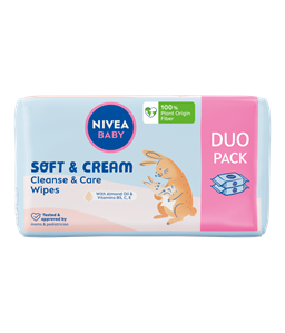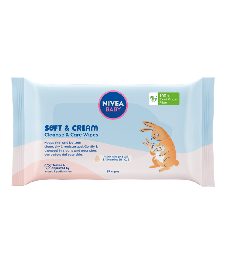 Kako bi osetljiva koža vaše bebe ostala hidrirana, koristite NIVEA Baby Soft & Cream vlažne maramice čiste, neguju i štite kožu prilikom promene pelene.