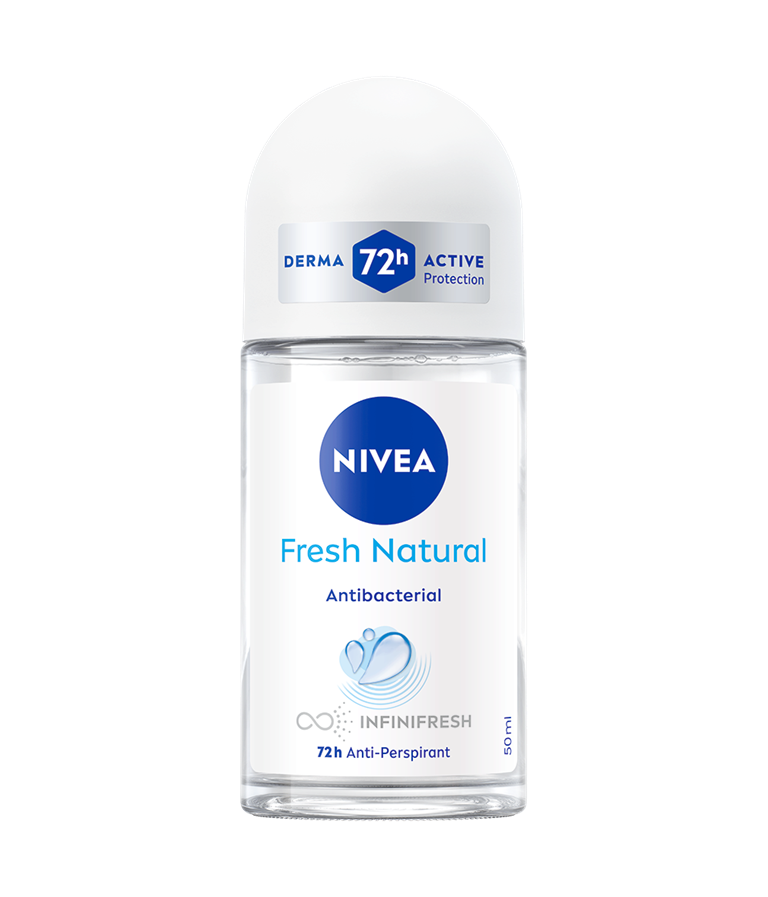 NIVEA Fresh Natural antiperspirant roll-on sa INFINIFRESH formulacijom pruža 72h zaštitu i osećaj svežine zahvaljujući ekstraktima okeana. Dermatološki dokazano odgovara čak i osetljivoj koži, bez etil-alkohola.