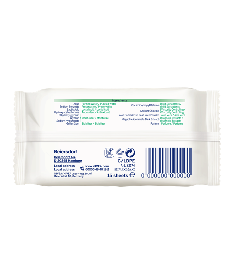NIVEA Intimo Aloe Water vlažne maramice za intimnu negu! Super mekani prirodno dobijeni viskozni materijal u kombinaciji sa aloe verom i ekstraktom magnolije: osvežava, čisti i čuva prirodni balans intimnog područja.
