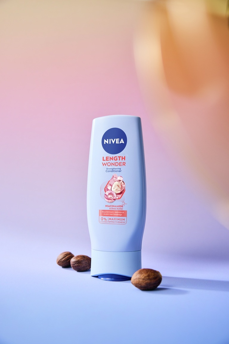 NIVEA Length Wonder jačajući balsam za kosu sa niacinamidom i ši puterom intenzivno neguje i jača strukturu kose, što pomaže da održite svoju kosu dugom – bez ispucalih vrhova.