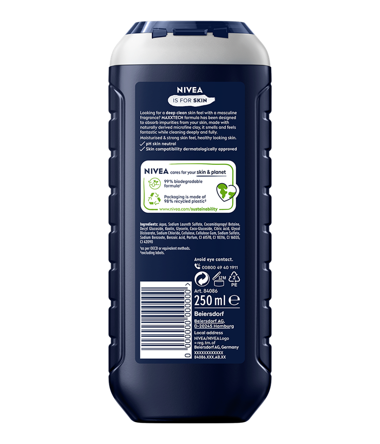 MAXXTECH formulacija je specijalno kreirana da upija nečistoće sa kože. Sa prirodno dobijenom mikrofinom glinom, NIVEA MEN Deep Clean 3u1 gel za tuširanje pruža fantastičan miris i osećaj, dok temeljno čisti kožu.