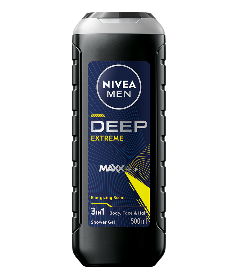 Oslobodite svog unutrašnjeg šampiona uz osvežavajuće iskustvo prilikom svakog tuširanja uz NIVEA MEN DEEP EXTREME gel za tuširanje. Za osećaj hidrirane i snažne kože i zdrav izgled.