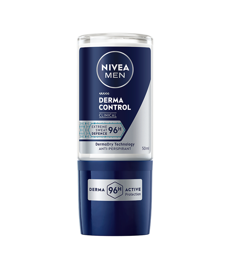 NIVEA MEN Derma Control Clinical antiperspirant roll-on sa DermaDry tehnologijom pruža klinički dokazanu zaštitu od znojenja i neprijatnih mirisa koja štiti kožu. Pouzdana 96h zaštita od znojenja i nega kože.