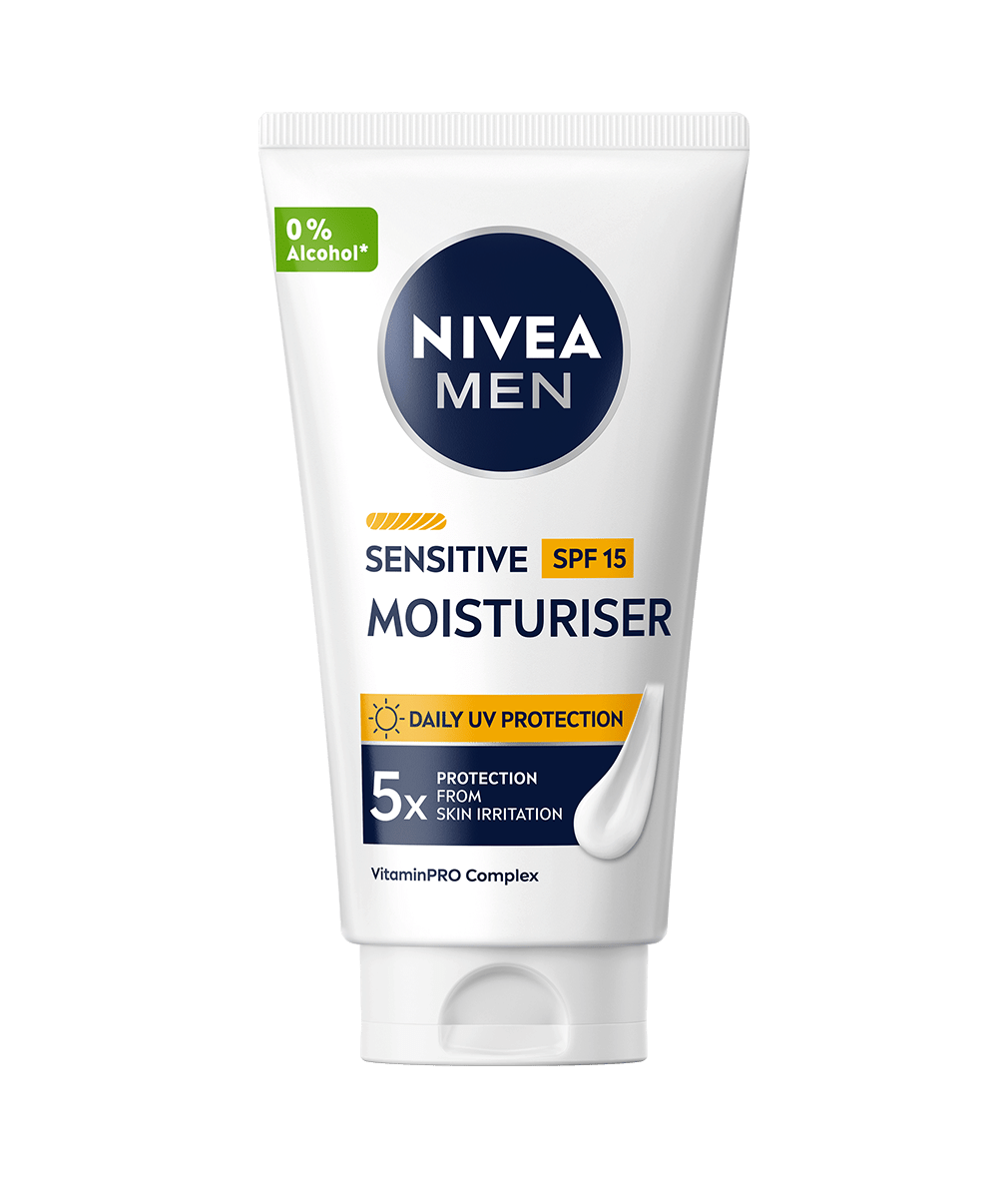 Iritirana koža? NIVEA MEN Sensitive hidratantna krema za lice sa SPF15 pruža celodnevno olakšanje i hidrataciju uz VitaminPro kompleks. Istovremeno štiti lice i vrat od štetnih UV zraka zahvaljujući formulaciji sa SPF15| 75 ml.