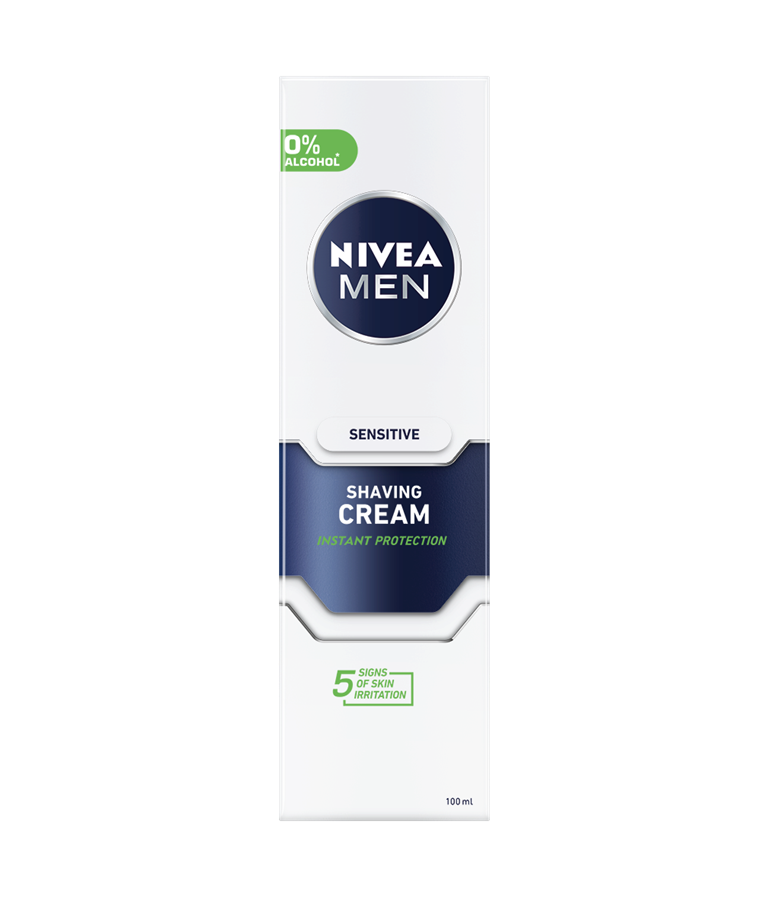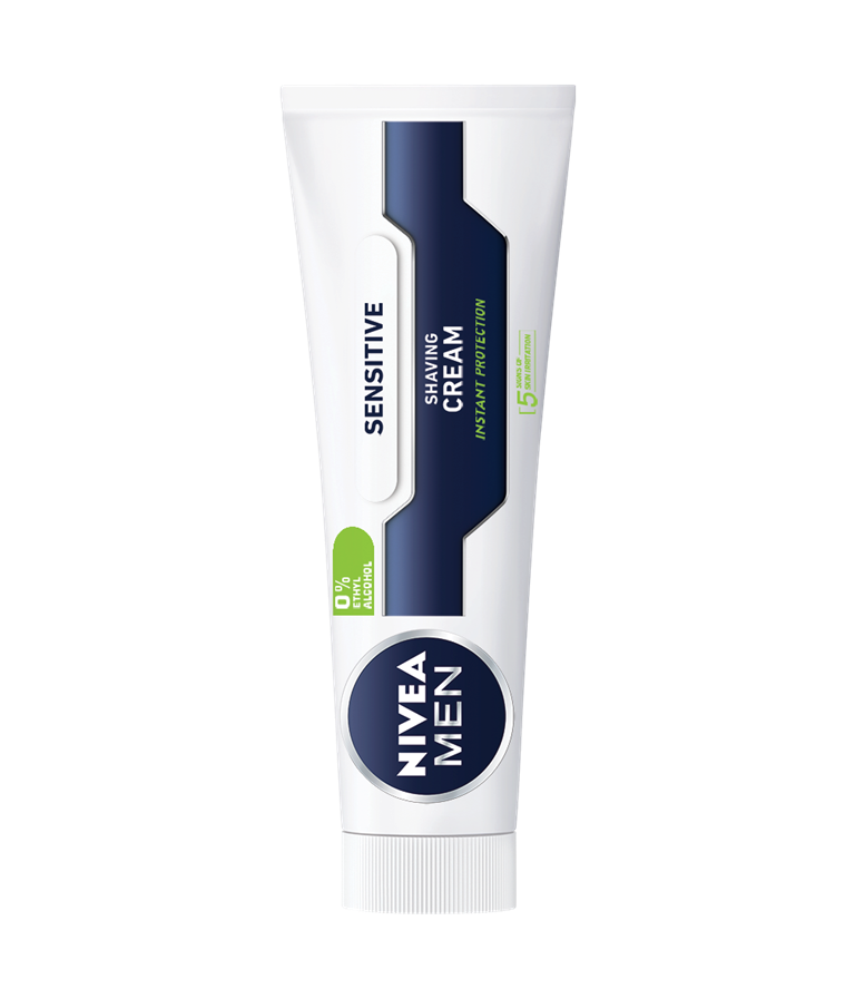 NIVEA MEN Sensitive umirujuća krema za brijanje štiti osetljivu kožu lica i priprema je za ugodno brijanje, bez osećaja peckanja.