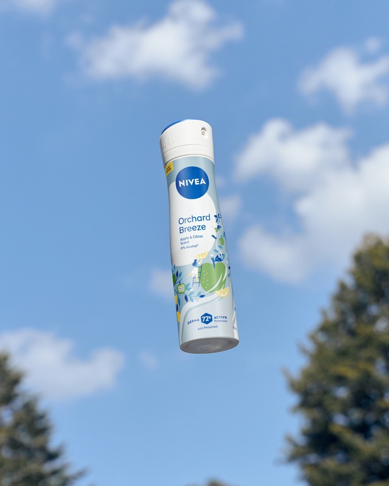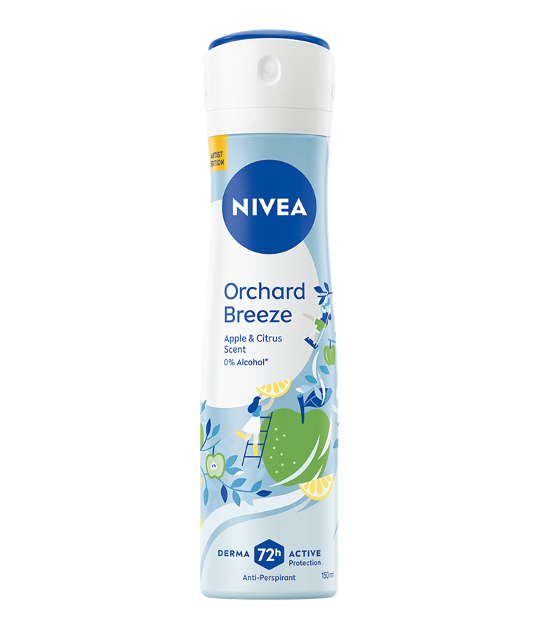 Uživajte u voćnom mirisu zelene jabuke i citrusa uz pouzdanu zaštitu do 72h. NIVEA Orchard Breeze antiperspirant u spreju kombinuje efikasnu zaštitu od znojenja i negu kože – za osećaj svežine tokom celog dana.