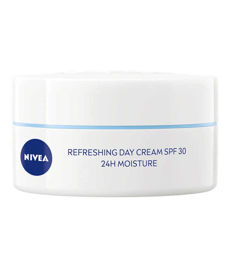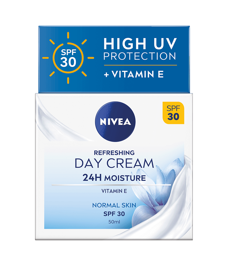 NIVEA® osvežavajuća dnevna krema SPF30 pruža 24-časovnu hidrataciju, štiti od oštećenja izazvanih suncem i prevremenog starenja, dok vitamin E i ekstrakt lotosa osvežavaju i balansiraju prirodan nivo vlažnosti kože.