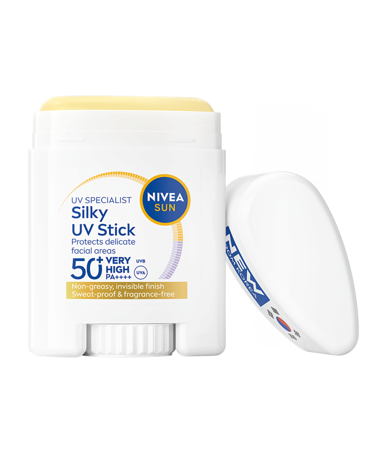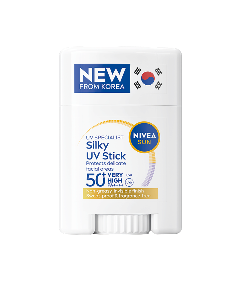 Otkrijte korejsku UV zaštitu posebno razvijenu za osetljive delove lica. Naš prvi UV stik sa SPF 50+ omogućava lako nanošenje bez dodira rukama, otporan je na znoj i vodu i ne sliva se u oči: NIVEA Sun UV Specialist Silky UV Stick za zaštitu kože lica od sunca SPF50+.