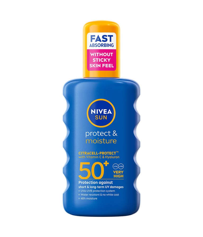 Pouzdana zaštita od kratkoročnih i dugoročnih oštećenja izazvanih UV zracima i 48h hidratacija uz novu, brzoupijajuću CITRACELL-PROTECT™ formulaciju: Protect & Moisture sprej za zaštitu od sunca SPF 50+.